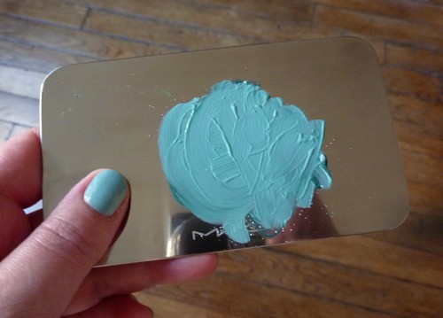 Alors , je n’ai pas trouvé au stand Mavala du Printemps , le vernis Lagoon snif snif mais ……….grande surprise j’ai craqué pour le vernis Mac (édition ephémère ) Mishievous Mint , il ressemble bcp au Lagoon , il est sublime ;-))