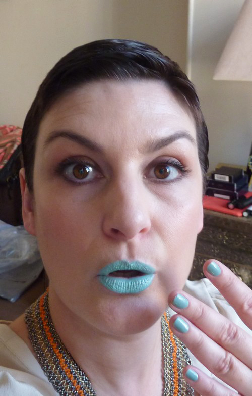 XD c’est vraiment la même couleur….du bleu comme ça sur les lèvres c’est vraiment dur à porter, mais ce bleu lagon malava alalala…….^^
