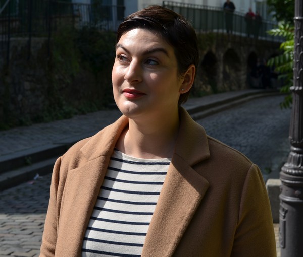 ah les cheveux courts, le teint clair et la tee shirt rayé c’est irrésistible ! j’adore. Et avec ce manteau c’est parfait !