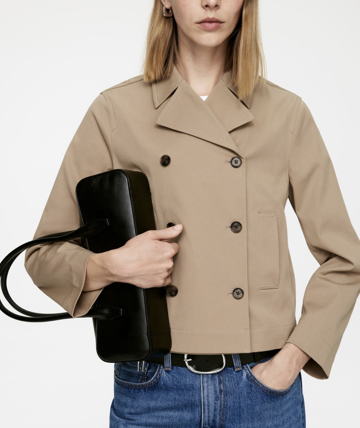 Je suis à la recherche d’un trench beige court mais pas aussi court que la veste que tu présentes
