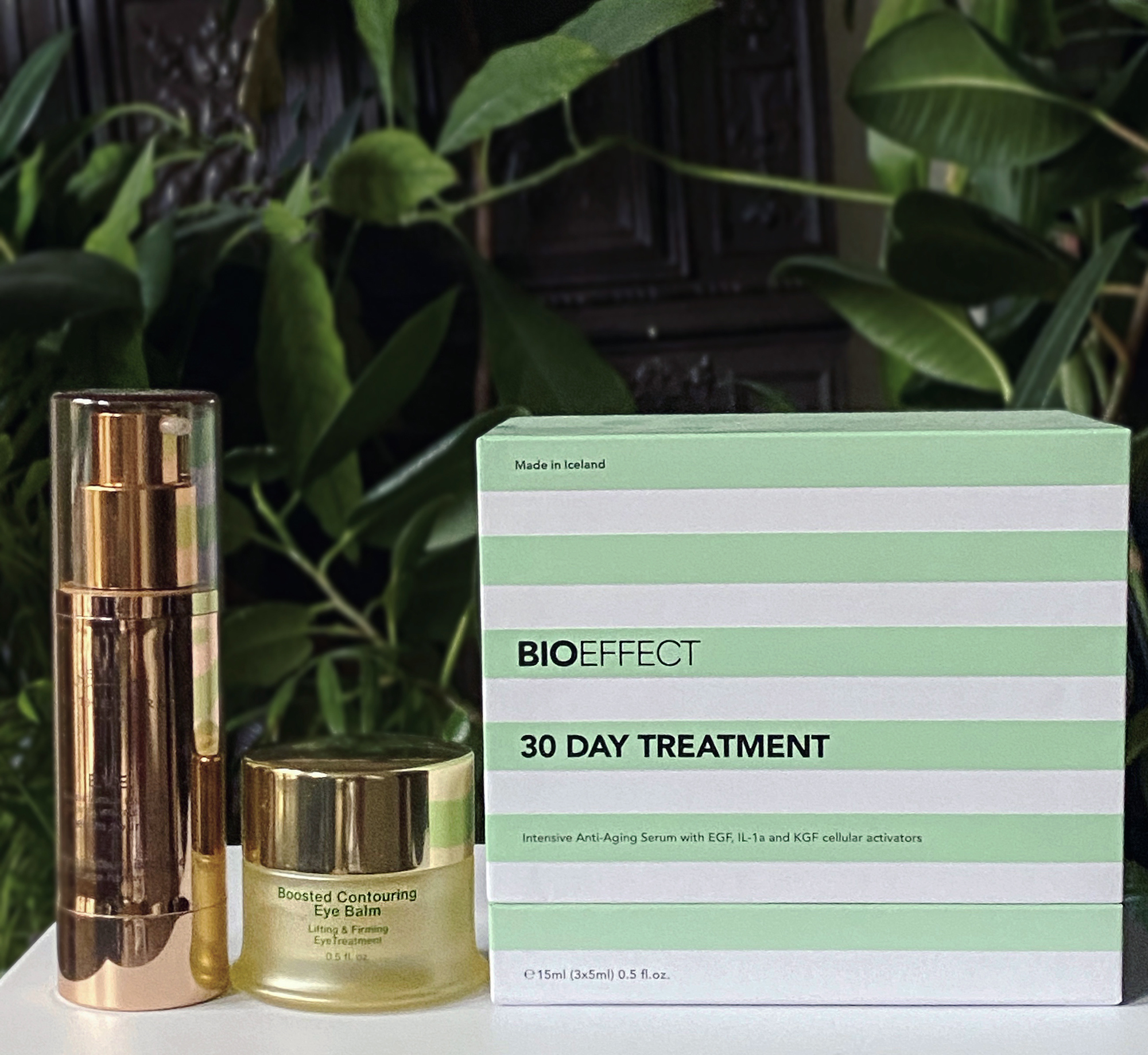 J’ai fait une cure 30 jours Bio Effect (terminée fin octobre), puis une du sérum EVE d’Esthederm (terminée il y a trois jours) ; et il y a deux semaines j’ai attaqué ce pot de Baume Yeux Lift Intense de Tata Harper.