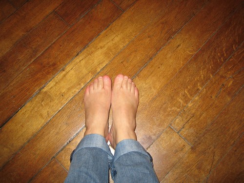 A la maison je suis à pieds nus ou en chaussettes quel bonheur il faut les soigner nos pauvres pieds nous supportent toute la journée euh.