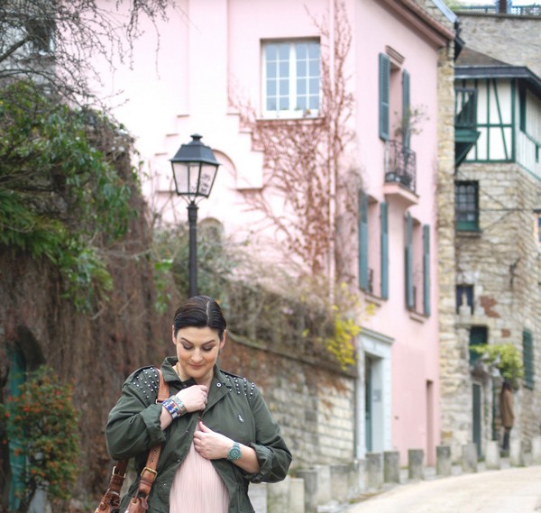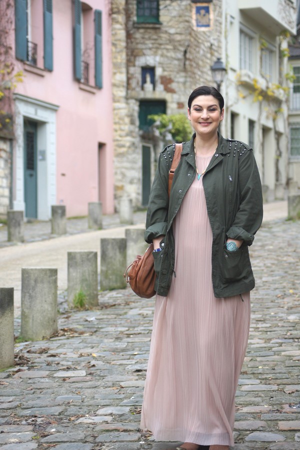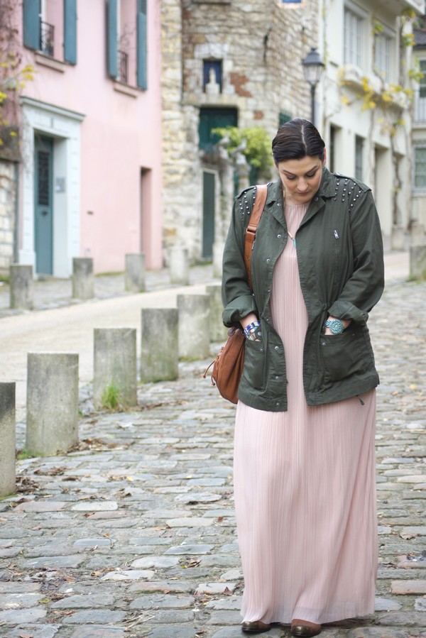 J’adore le rose poudré ! Et bravo pour la combo avec la veste kaki.