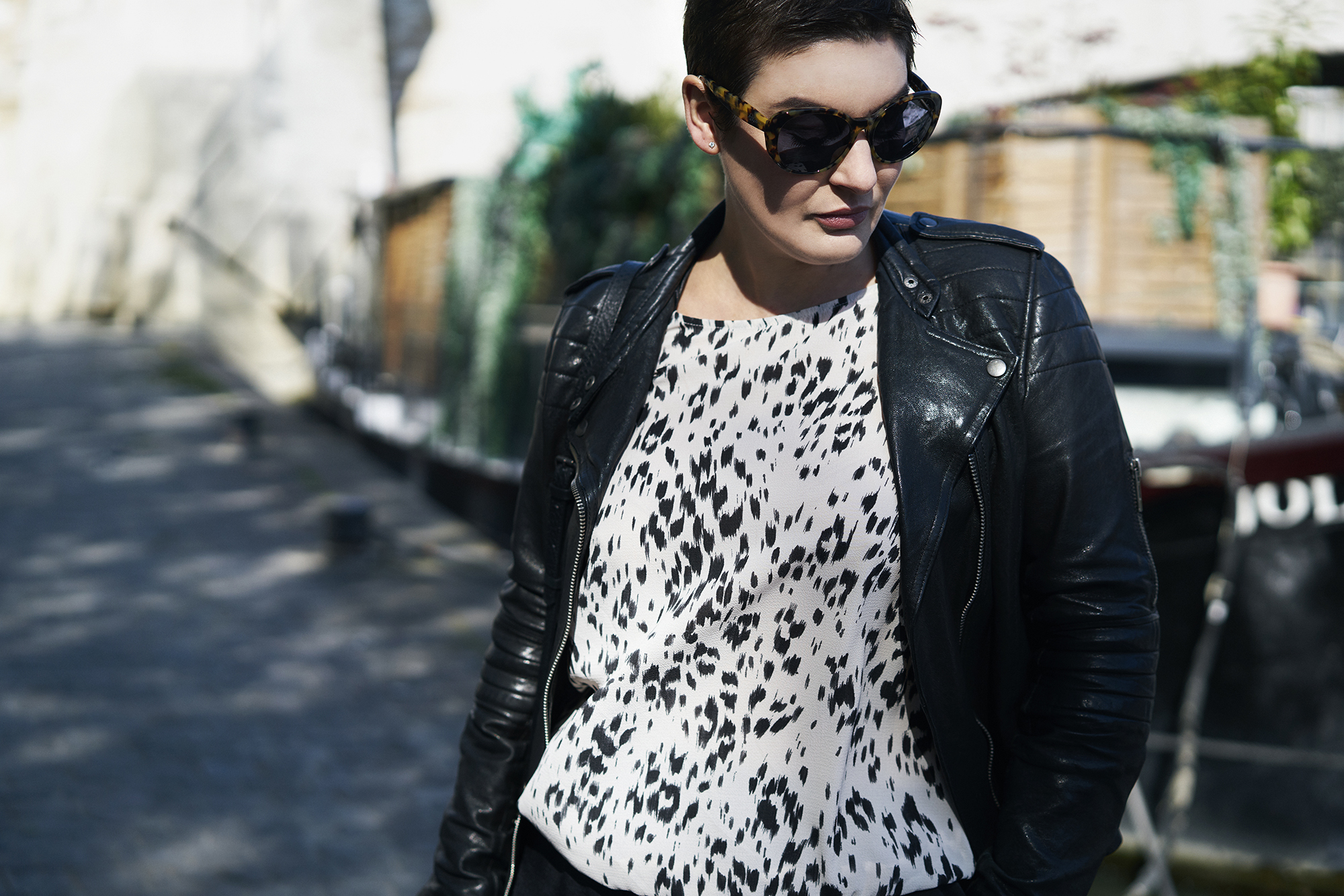 Mon pantalon vient sans surprise de chez Asos, je l’adore parce qu’il est à la fois méga confort et plus classe qu’un jean (ça nous change bien), et j’ai sauté le pas de l’imprimé animal avec cette tunique 1.2.3 que je trouve sympa associée au reste.