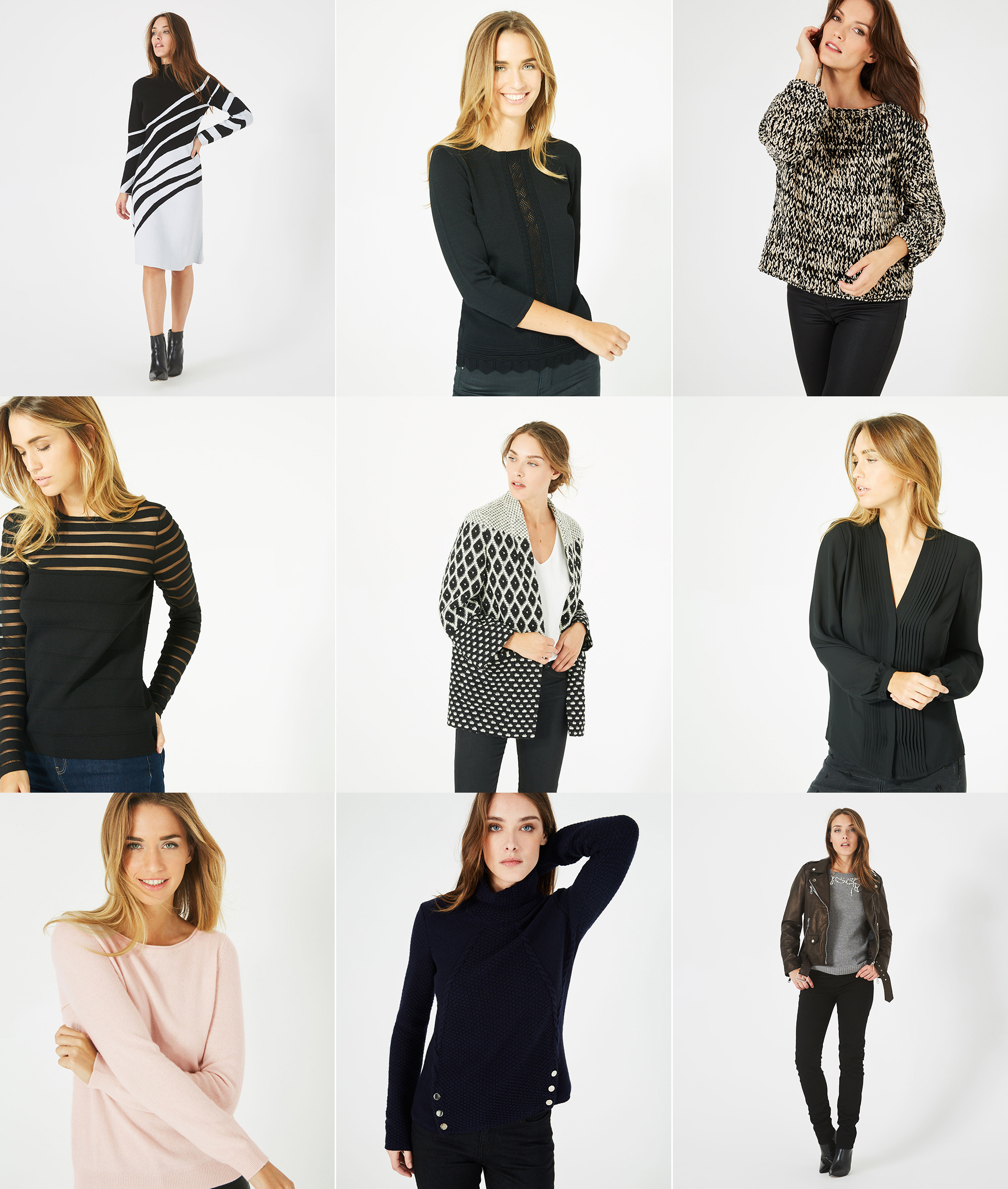 J’aime surtout le manteau, la robe, la veste fine et le pull aux boutons.