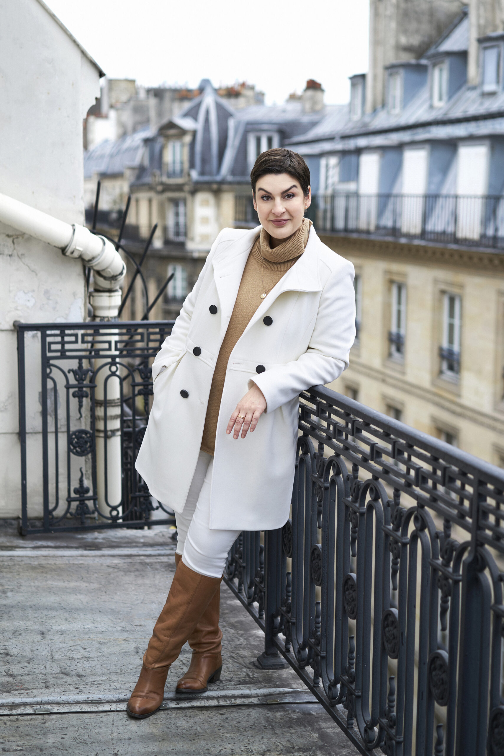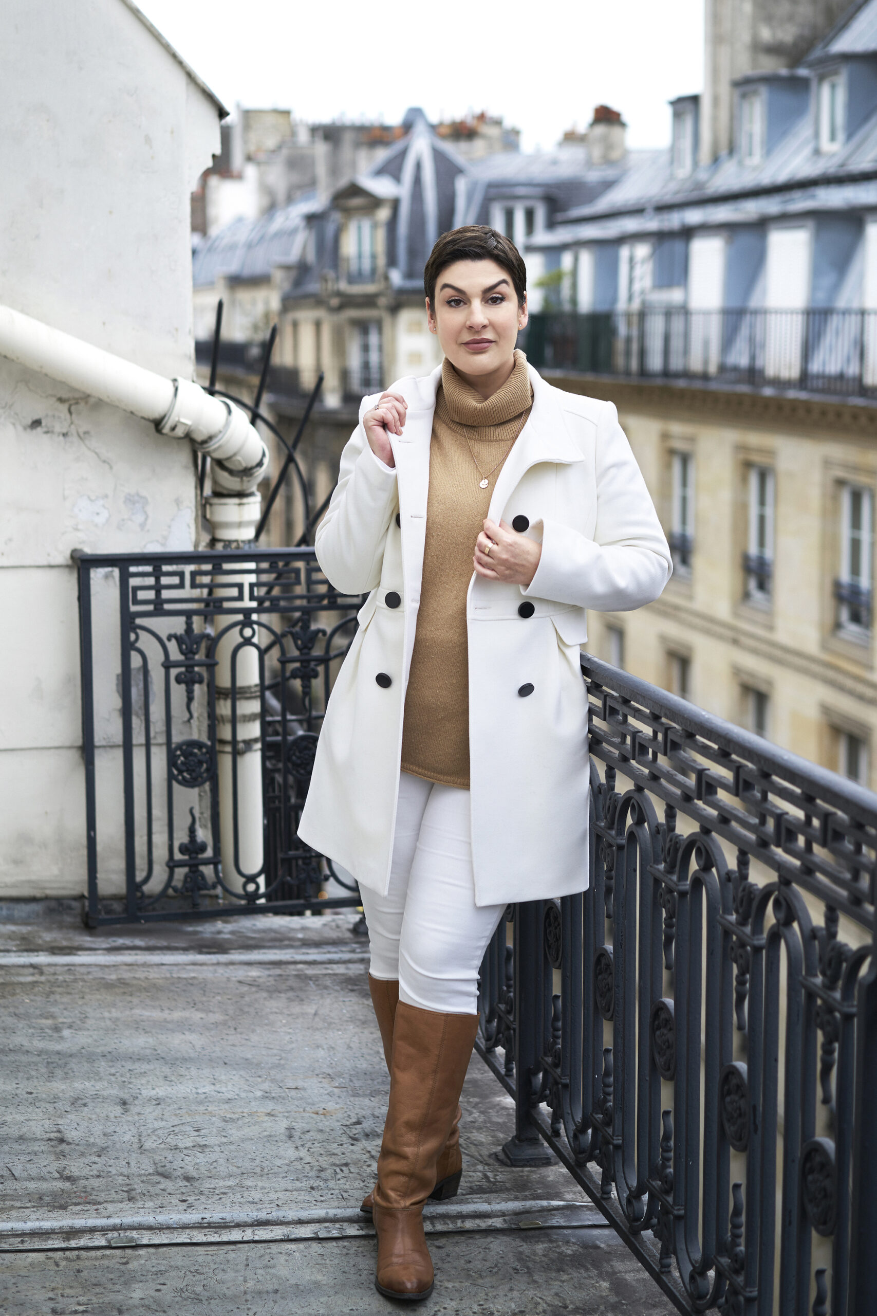 La combinaison pull col roulé, manteau et bottes est le pendant hivernal du jeans, t-shirt, basket.