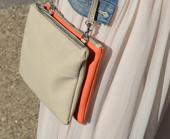 Mois auss l’été, j’aime m’amuser avec les sacs, pochettes plus fantaisie alors que je n’aime que le cuir pour l’hiver.