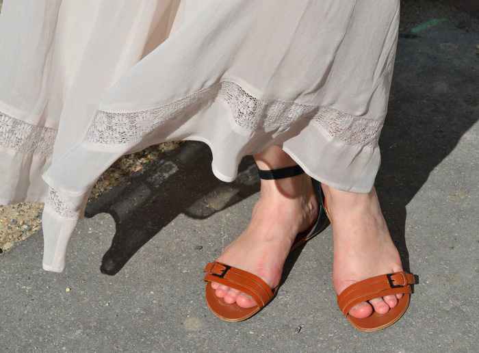 Cette robe rappelle les robes anciennes, c’est vraiment très joli et ça te va bien avec les sandales et tout l’ensemble.^^