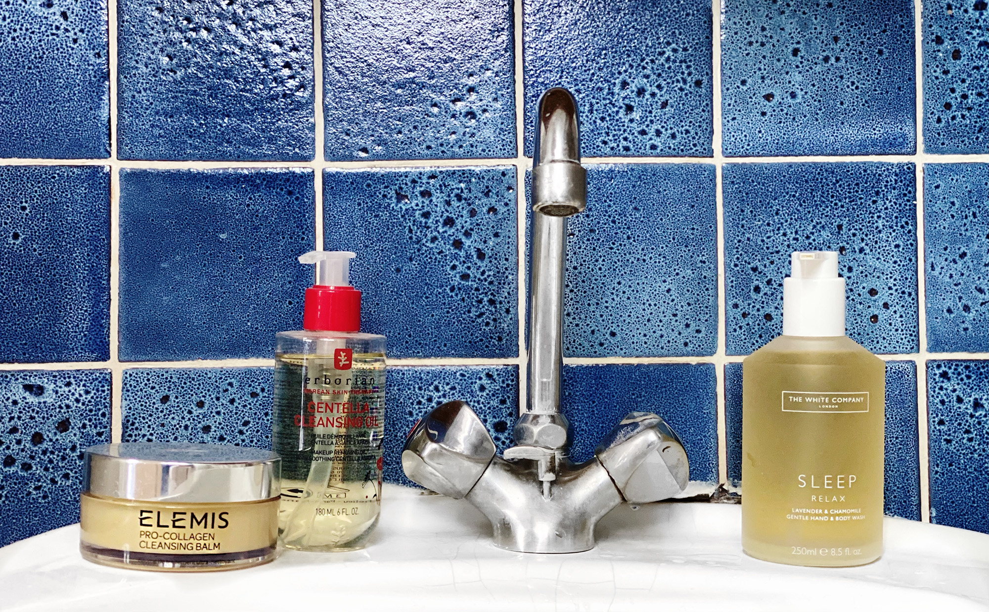 J’utilise une huile démaquillante Nocibé que j’apprécie beaucoup, un nettoyant Estée Lauder et pour les mains, mon éternelle savonnette miel/amande.