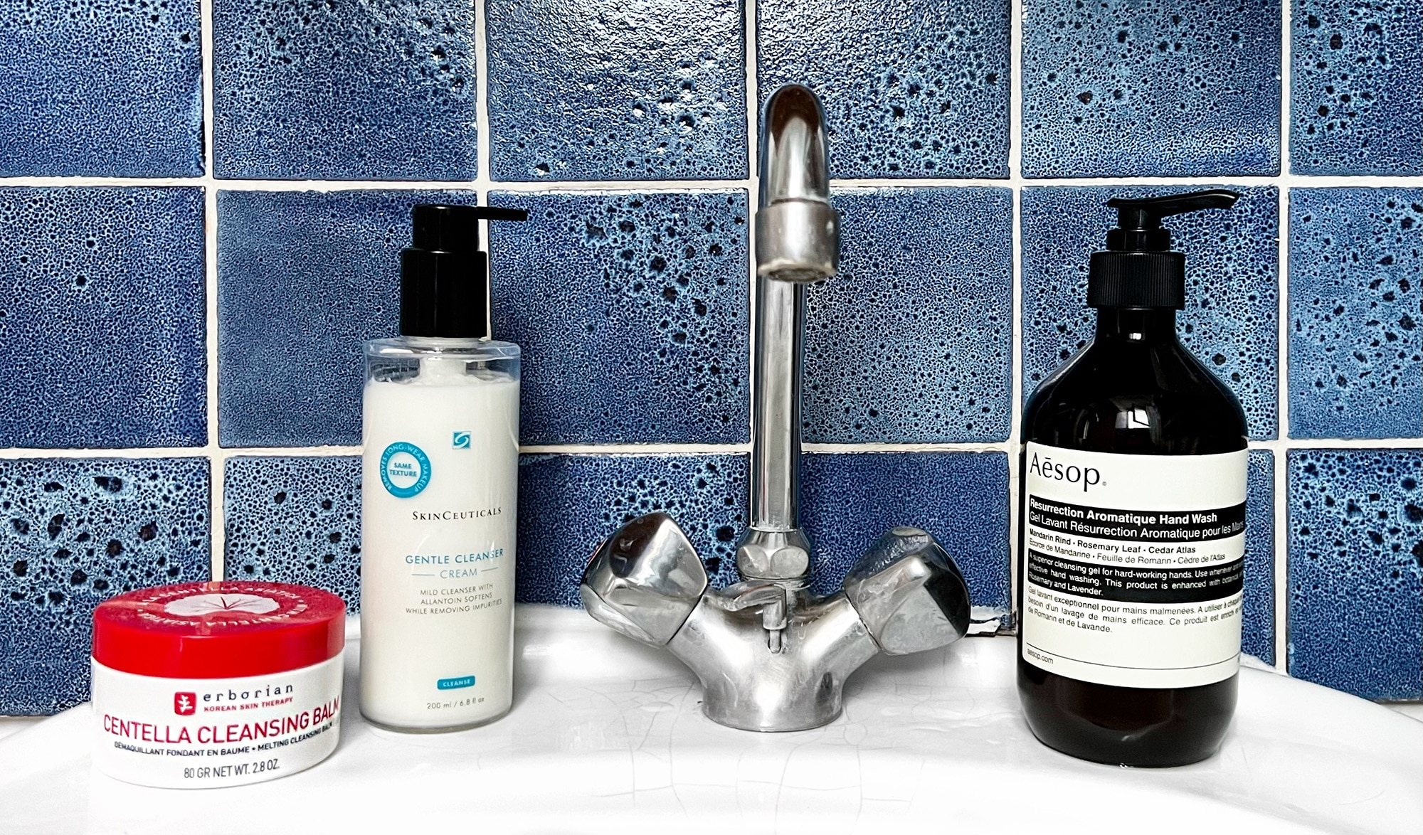 Ton lavabo me fait réaliser que je ne fais plus de double nettoyage depuis un long moment sans que ce soit conscient, je n’utilise que Take The Day Off même quand j’avais un produit teint sur le visage en journée. C’est en partie parce que je n’ai plus de nettoyant visage qui me convienne, il faut d’ailleurs que je commande celui à la rosa Centifolia de Ren avec le sérum anti rougeurs : j’en ai retrouvé un fond dans mes tiroirs et il fait visiblement du bien à ma peau en ce moment.