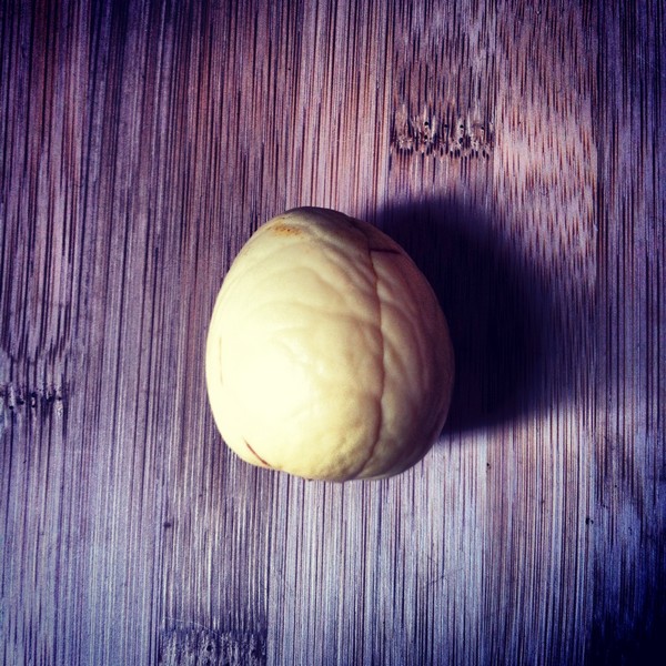 1. Peler le noyau d’avocat (je sais pas pourquoi mais il paraît qu’il faut le faire) (ça m’éclate, on dirait un cerveau ;-)