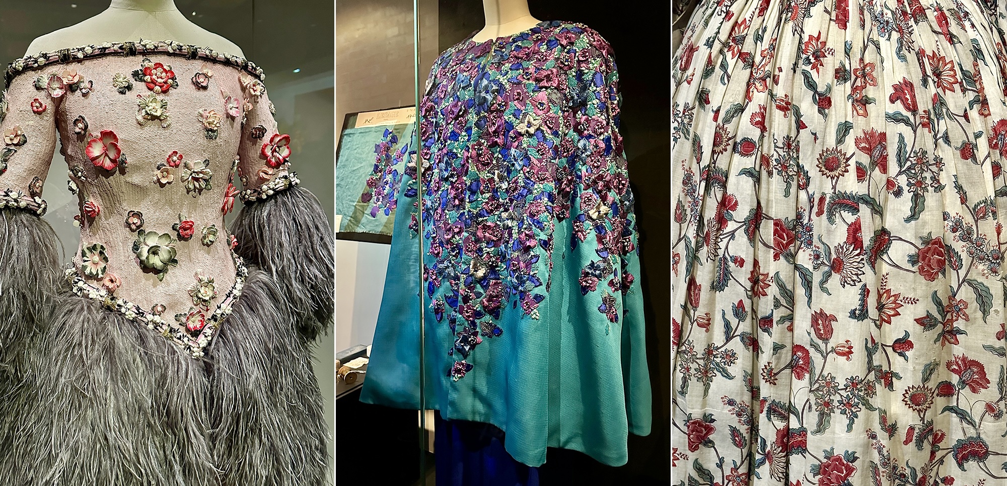 J’ai donc beaucoup aimé l’expo « Tisser, broder, sublimer » au Palais Galliera. Elle présente des vêtements échelonnés sur presque trois siècles jusqu’à maintenant, tous magnifiquement tissés, imprimés ou brodés de mille façons.