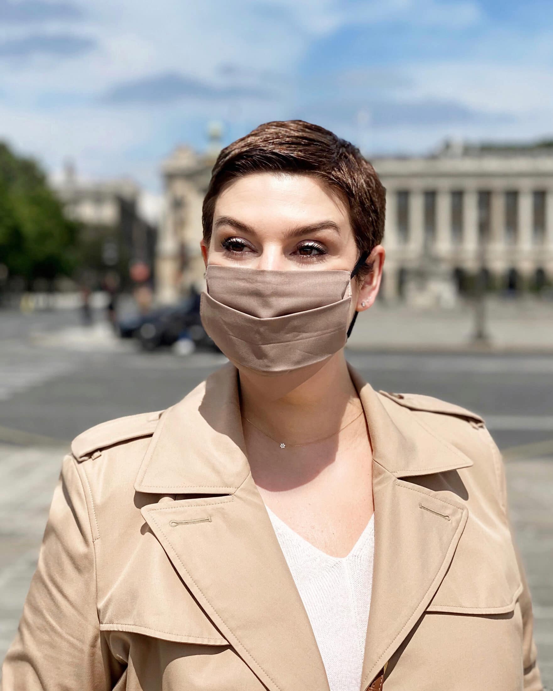 Tu es magnifique sur cette photo, j’aime la couleur de ton masque et de ton trench, des tons si doux