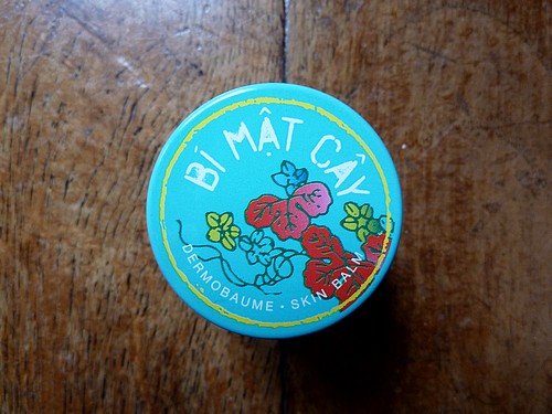 J’aodre les 4 baumes Bi Mat Cay, mais je me sers surtout du rouge (appliqué sur les tempes contre les migraines) et du rose pour les lèvres, qui a un goût dément.