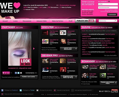 On peut ajouter des gens comme amis, organiser des make up parties avec Gemey Maybelline, poster des vidéos, lancer des discussions sur le maquillage, plein de trucs make upesques.