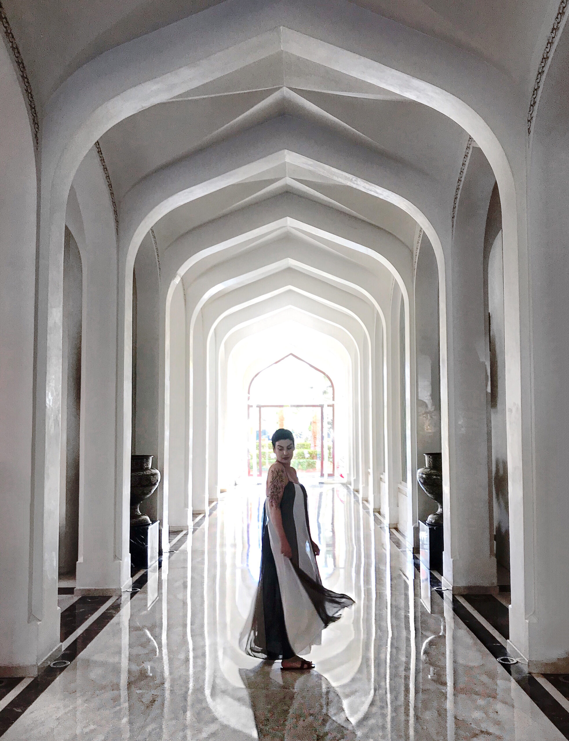 Tes photos sont envoûtantes et tu es magique et magnifique avec ta robe aérienne sur celle de l hôtel, avec un côté « l année dernière à Marienbad « ou India song » bref tu envoie du rêve …