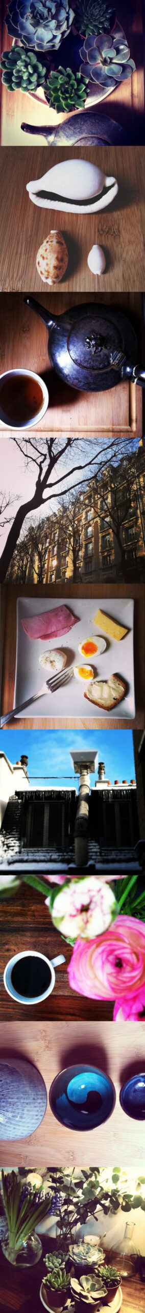 Cette semaine, graaaaande obsession pour les natures mortes (j’adore mes succulentes) – et la météo ! C’est à dire qu’à Paris c’était le printemps, et puis pof d’un coup il y avait des stalactites aux fenêtres ! lol quoi.