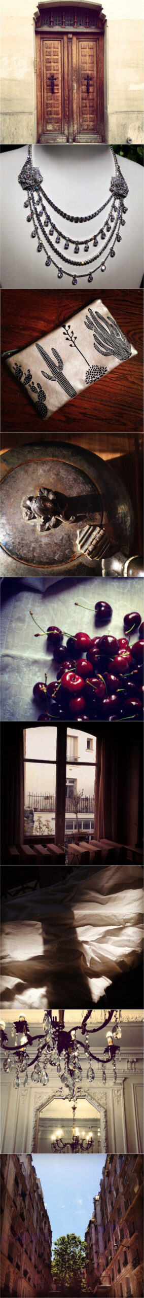 J’ai un très très gros faible pour la photo des cerises (je vois super bien une photo comme ça dans une cuisine), le collier qui est splendide, et bien sûr la photo de théière (en argent massif ;p). J’aime toujours les photos de ta théière. Elle est très photogénique et capte une belle lumière :)