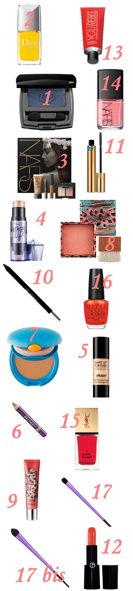 bon ça me rassure parce que rien ne me fait vraiment envie dans cette liste … les vernis sont sublimes mais j’ai déjà des couleurs semblables, le blush coralista a été LE premier blush que j’ai acheté, il y a presque un an maintenant si je me souviens bien.